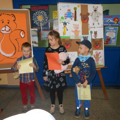 25 listopada obchodzimy Światowy Dzień Pluszowego Misia. Z tej okazji w naszej szkole przez tydzień gościły duże i małe, beżowe i białe, puszyste i pluszowe misie. Uczniowie klas I-III brali udział w różnych konkursach: plastycznym literackim i recytatorskim, których bohaterami były kochane przez wszystkich PLUSZAKI.