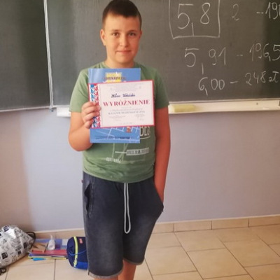 Gratulacje dla wszystkich uczestników, a w szczególności dla Miłosza Wabińskiego z klasy 4b, który otrzymał również nagrodę książkową za wysoki wynik (96,25pkt.) w konkursie.